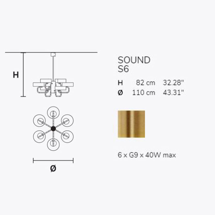 Product Code: 2MSoundS6 Light source: 6 x G9 40W (max) Materials: Metal brushed gold frame with decorated glass diffuser Dimensions: H 820mm x 1100mm diameter. Brand: Masiero Spherical shaped metal interior pendant finished in brushed gold. Available in different sizes and configurations (price varies). LED option available (price varies). Designed by Giovanni Battista Gianola. Designed and made in Italy. DALI, 1-10V & PUSH dimming. IP20 For trade enquiries, please contact us below. RELATED ITEMS