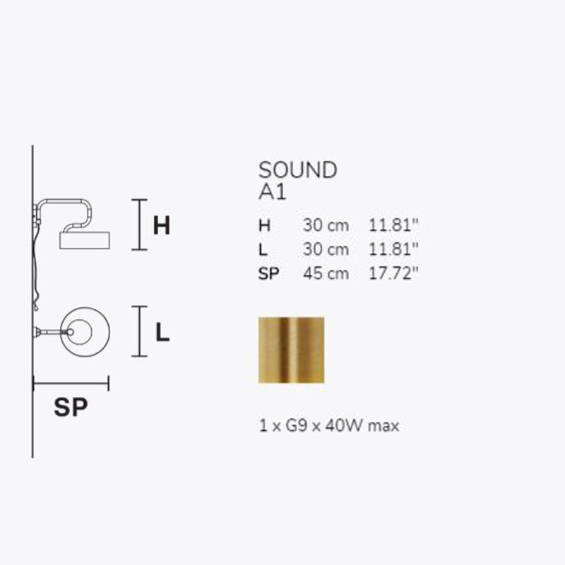 Product Code: 2MSoundA1 Light source: G9 40W (max) 3000k Materials: Metal brushed gold frame with decorated glass diffuser Dimensions: H 300mm x D 300mm Brand: Masiero Spherical shaped metal wall light finished in brushed gold. LED option available (price varies). Designed by Giovanni Battista Gianola. Designed and made in Italy. 1-10V & PUSH dimming. IP20