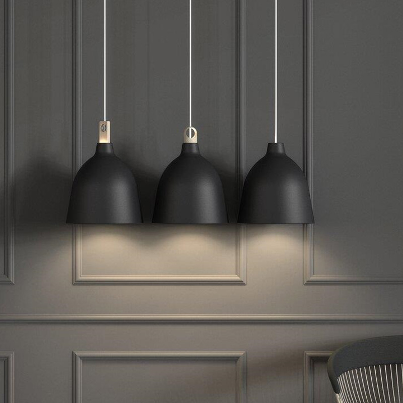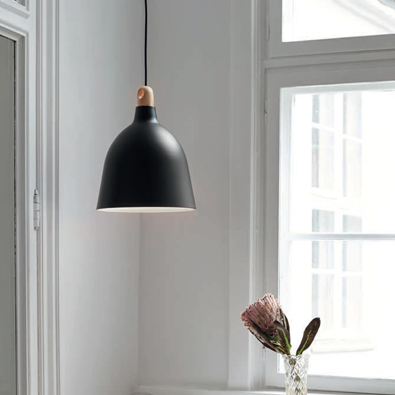 Product Code: 6N4812300x Light source: 60W (max) E27 Materials: Metal/Wood Dimensions: H 362mm. 290mm diameter. Cord length 3000mm Brand: Nordlux The latest release from Nordlux sees their signature Scandinavian style meet contemporary minimal design in a classic way. The Moku reflects Japanese influence and combines a classic shape with traditional design principles. Available in grey & black and additional optional wooden tops. Designed in Denmark. Globe not included. IP20