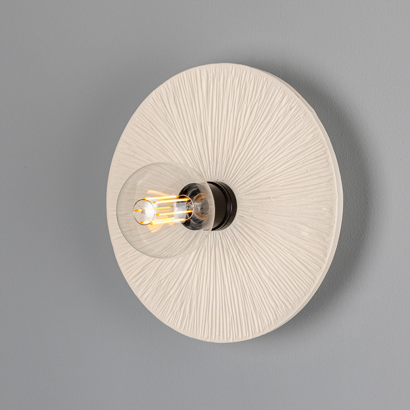 Product Code: 6MMLCMWL045PCMBK Light source: 1 x E27 40W (max) | Not Incl. Materials: Ceramic, Brass Dimensions: Ø 280mm x D 100mm Brand: Mullan Much like ancient bog oak found preserved in peat bogs throughout Ireland, this round ceramic wall light is unique in nature. This ceramic dish wall light has a charming textured surface in a White colour. Other metal finishes and colours available, pictured with Matte Black Rated IP20 suitable for indoor use. Dimmable with compatible globe. Designed by Mullan and made in Ireland. Please note that ceramic lights are handmade and the exact size, colour and texture of each piece may vary. For trade enquiries, please contact us below. |