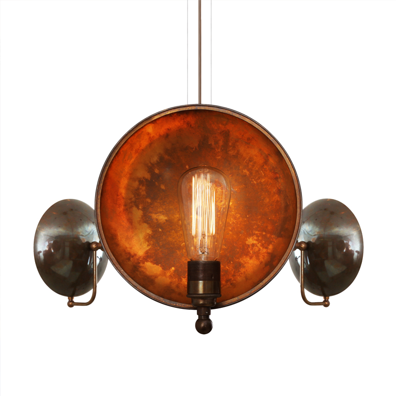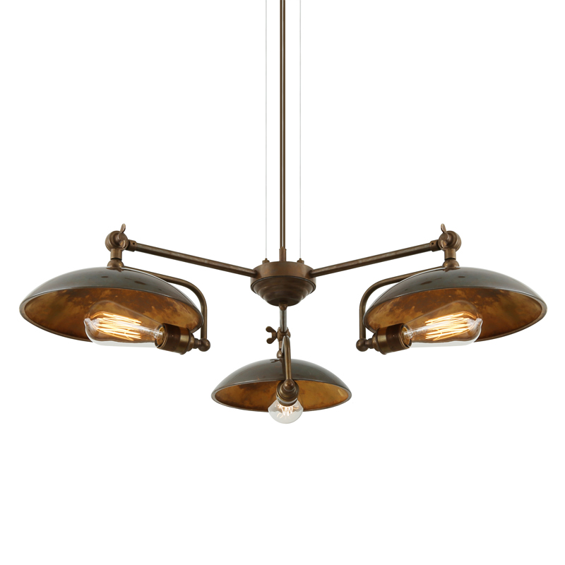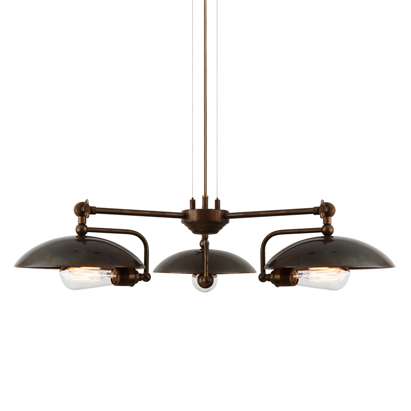 Product Code: 6MMLF210ANTBRS Light source: 3 x E27 60W (Max) | Not Incl. Materials: Brass Dimensions: Ø 660-710mm x H 190-280mm | 1000mm Cable Suspension Brand: Mullan Emanating warmth through its shadowed patinated back plate, the industrial Chulainn chandelier embodies the richness of the brass work. The reflection from the back plate engages the eye, while the individually adjustable shades can create unique lighting experiences. Available in various metal finishes. Also available in other sizes (pricing varies). Longer chain lengths on request (pricing varies). Rated IP20 suitable for indoor use. Dimmable with dimmable globes. Designed by Mullan and made in Ireland. For trade enquiries, please contact us below. |
