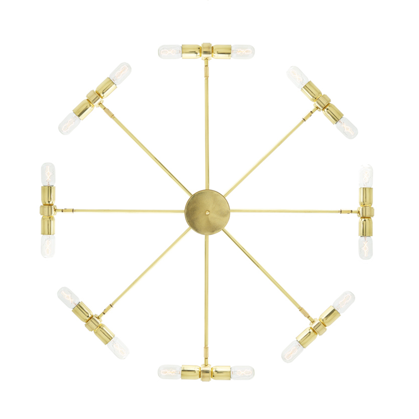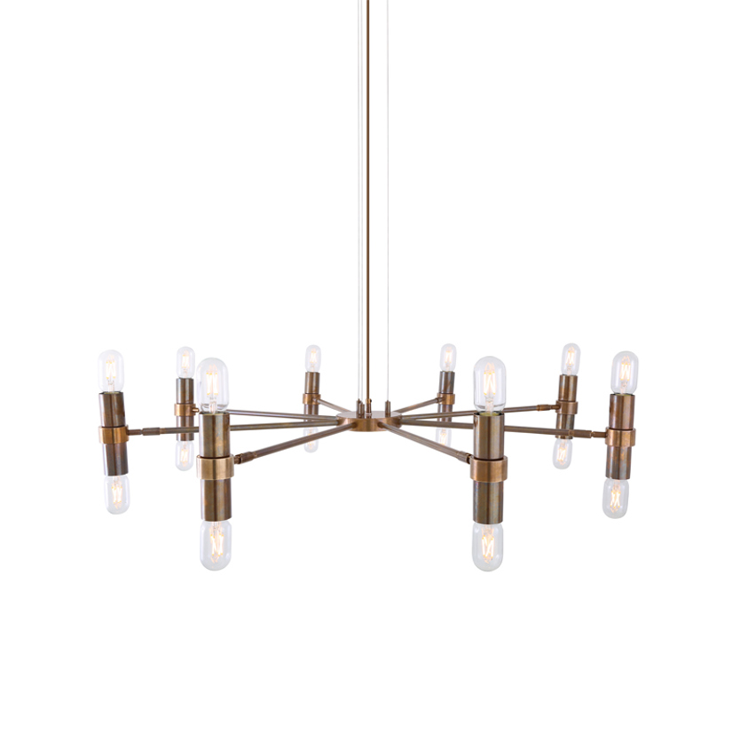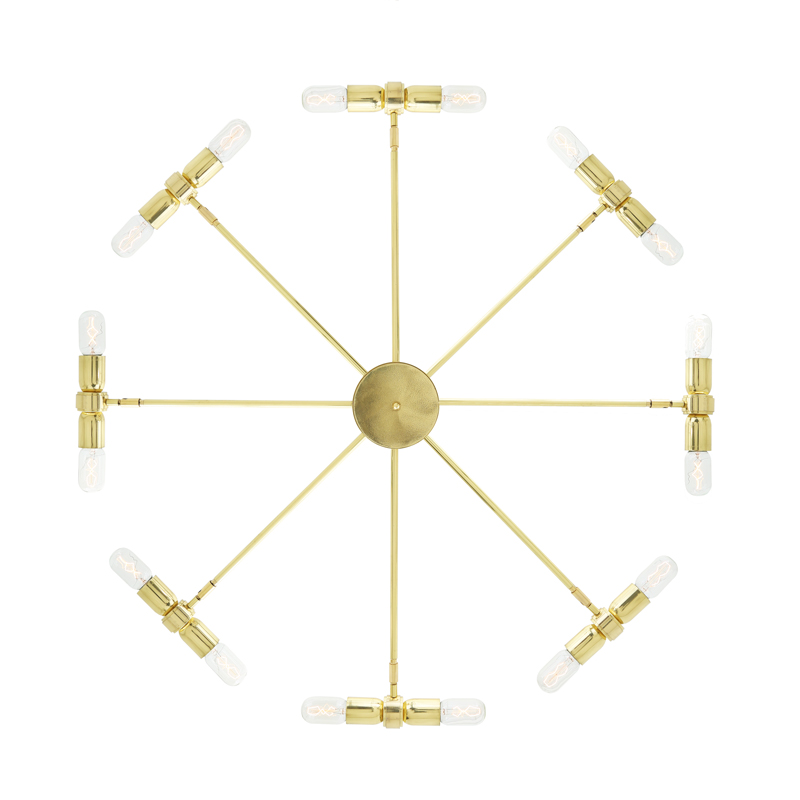 Product Code: 6MMLF245ANTBRS Light source: 16 x E27 60W (Max) | Not Incl. Materials: Brass Dimensions: Ø 1040mm x H 70mm | 1000mm Cable Suspension Brand: Mullan The Kendu chandelier is a modern brass chandelier with eight spokes radiating from a cylindrical centre. At the end of each brass spoke is an adjustable double lamp holder that can be positioned in a number of ways depending on the desired look. Available in various metal finishes. Longer chain lengths on request (pricing varies). Rated IP20 suitable for indoor use. Dimmable with dimmable globes. Designed by Mullan and made in Ireland. For trade enquiries, please contact us below. |
