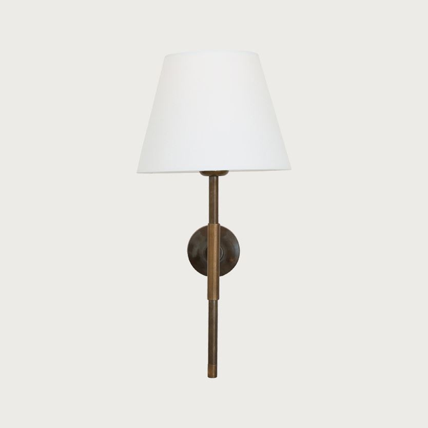 Product Code: 6MMLWL328ANTBRS Light source: 1 x E27 40W (Max) | Not Incl. Materials: Brass, Fabric Dimensions: H 440mm x W 200mm x D 230mm Brand: Mullan The Tenby Wall Light is a refined, vertical design that brings quiet elegance to interior spaces. Featuring a fabric shade paired with a slender brass stem and backplate, it casts a soft, ambient glow ideal for bedrooms, hallways or reading corners. Its elongated form adds subtle structure while remaining timeless and versatile. Available in various metal finishes, with either a White, Cream or Black shade (included) Rated IP20 suitable for indoor use. Dimmable with dimmable globe. Handcrafted by Mullan Lighting in Ireland. For trade enquiries, please contact us below. RELATED ITEMS
