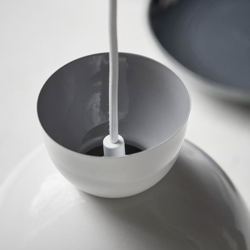 Product Code: 6N4640300x Light source: 1 x E27 40W (max) Materials: Metal Shade and white cable Dimensions: H 265mm x 210mm diameter. Cable length: 3000mm Brand: Nordlux These circular shapes have given the light fixture both its name and identity with its simple soft curves and playful expression meeting elegantly. Designed in Denmark. Globe not included Available in: white, black, rose & petrol. IP rating 20