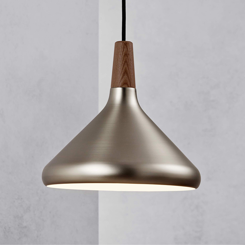 Product Code: 6N78213032 Light source: 1 x E27 60W (max) Materials: Metal and oiled walnut Dimensions: H 270mm x 270mm diameter. Cable length: 3000mm