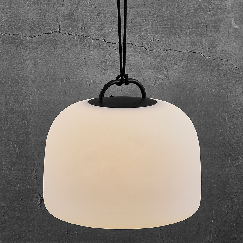 BRAND: Nordlux Design and functionality are carefully thought through, so the series beautifully illuminates your everyday life - both inside and outside. Kettle is not only decorative, it also provides a good light, and simultaneously the brightness of the light can be adjusted in three levels. The built-in battery has a durability up to five hours at full power and even longer if the light is turned down to a cozy lighting. The battery is easily charged via the included USB cable. Kettle 36 is a beautiful lamp which can be placed exactly where you want. Hang it in the tree in the garden with the included cord or place it directly on the terrace or floor in the living room. Kettle is produced in hard plastic and is durable against wind and water. IP65 Designed in Denmark Dimmable