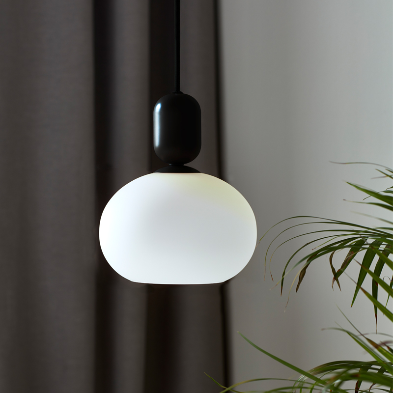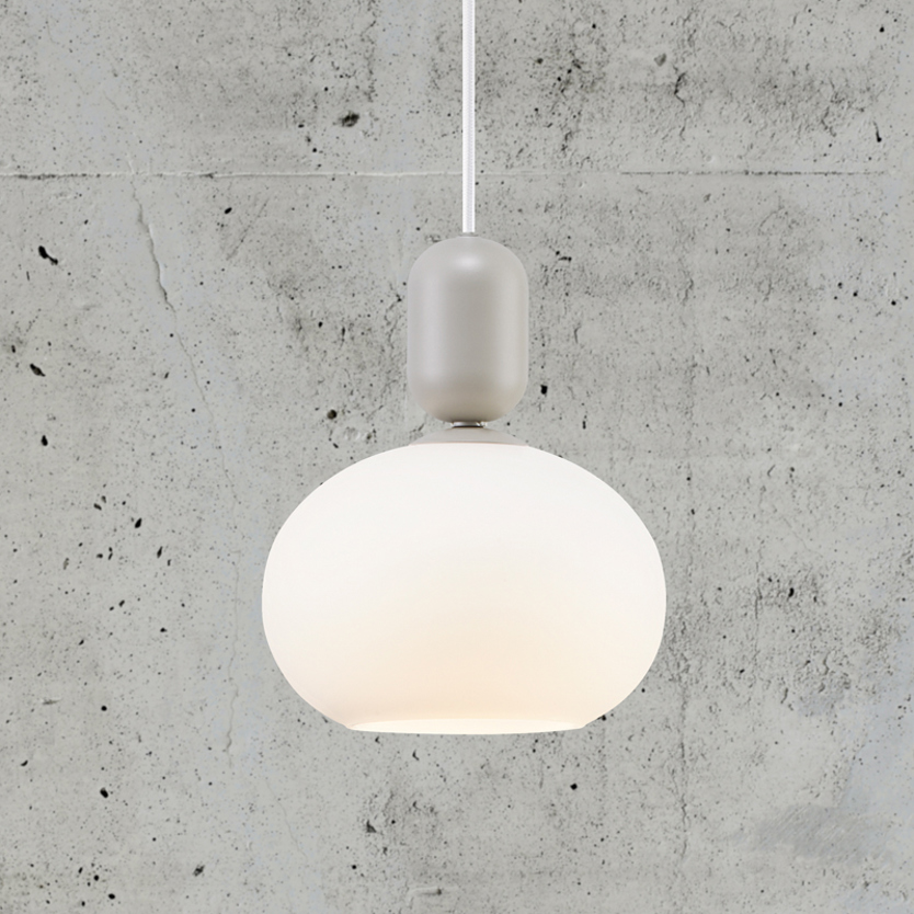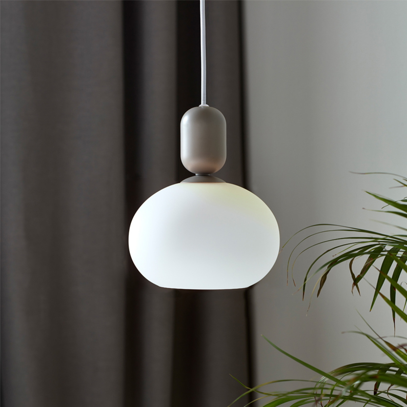 Product Code: 6N20110030xx Light source: 1 x E27 Materials: Metal, Glass Dimensions: Ø 200mm x H 238mm The Notti Pendant's organic shape offers a simple and elegant design with the matte metal finish available in either a mocha or grey finish.