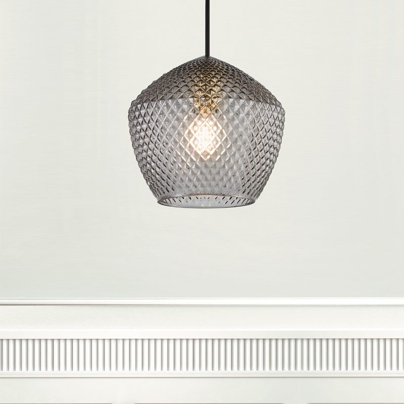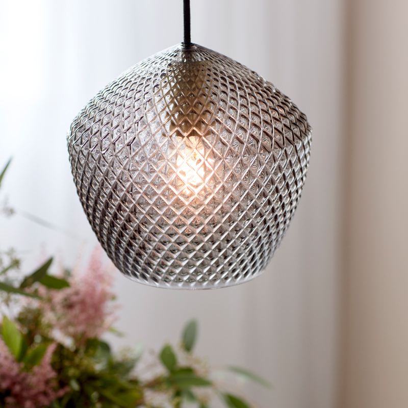 Product Code: 6N2010673047 Light source: 1 x E27 Materials: Metal, Glass Dimensions: Ø 230mm x H 215mm The Orbiform is an exclusive, stylish and glamorous design with structured smoke glass that creates a beautiful light effect and brass accents. Globe not included Designed in Denmark. IP20