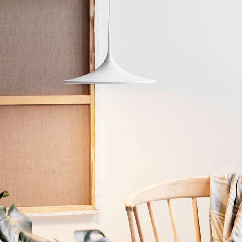 Product Code: 6N463330XX Light source: 14W LED (Built-In) | 3000K | 1230lm Materials: Metal, Acrylic Dimensions: Ø 350mm x H 173mm | 3000mm Textile Suspension Brand: Nordlux With its trumpet form, Skip has a classic, light and floating expression. The curvy shape results in a truly beautiful pendant reflecting the designer's keen eye for tasteful design and aesthetic considerations - here, Scandinavian design culture is presented in the best possible way. Available in Black or White. Rated IP20 suitable for indoor use. Dimmable with leading / trailing. Includes a 5 year LED warranty. Designed by Nordlux Denmark. SALE PRICE WHILE STOCKS LAST For trade enquiries, please contact us below. |