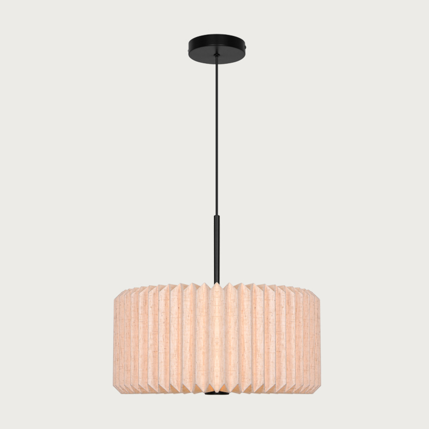 Product Code: 6N2612223003 Light source: 1 x E27 15W LED (Max) | Not Incl. Materials: Linen, Metal Dimensions: Ø 400mm x H 350mm | 2000mm Suspension Cable Brand: Nordlux Vivienne combines linen and metal in a timeless and elegant design. The pleated fabric shade adds a soft, decorative expression and creates a diffused light that brings warmth and comfort to the room, perfect for soft light in transitional spaces and bedrooms. Rated IP20 suitable for indoor use. Dimmable with dimmable globe. Designed by Nordlux Denmark. This product is supplied flat packed for easy assembly. For trade enquiries, please contact us below. RELATED ITEMS
