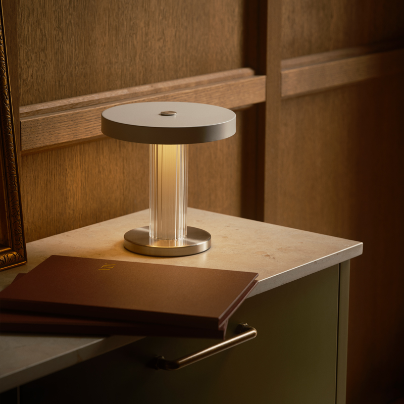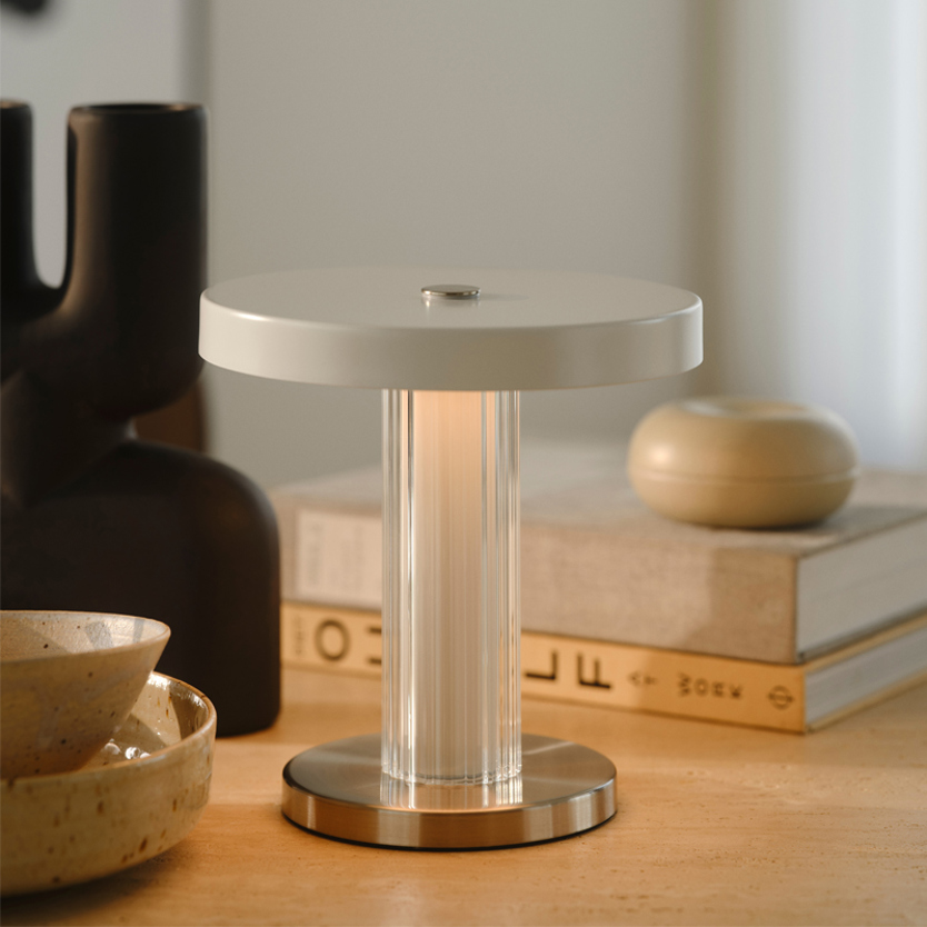 Product Code: 6N2520135001 Light source: 5W LED (Built-In) | 3000K | 225lm Materials: Metal, Glass Dimensions: Ø 210mm x H 219mm Brand: Nordlux Trezzi, an elegant, portable table lamp was designed by Danish design duo Anker Studio. Trezzi has a modern and elegant design with fluted glass that draws inspiration from Art Deco style. Dim the light in three steps using the touch button to create the perfect ambience. The lamp is easily charged with the included USB cable. Rated IP20 suitable for indoor use. Built-in touch dimming. Up to 60hrs of battery life on lowest setting. Designed by Anker Studio for Nordlux Denmark. For trade enquiries, please contact us below. |