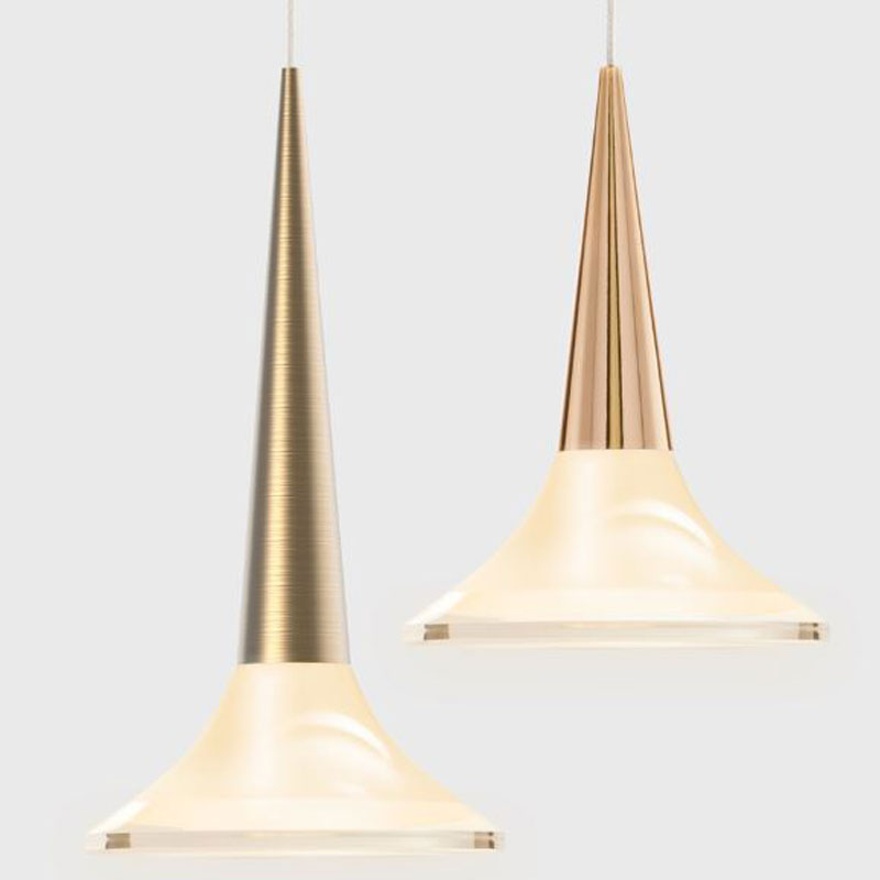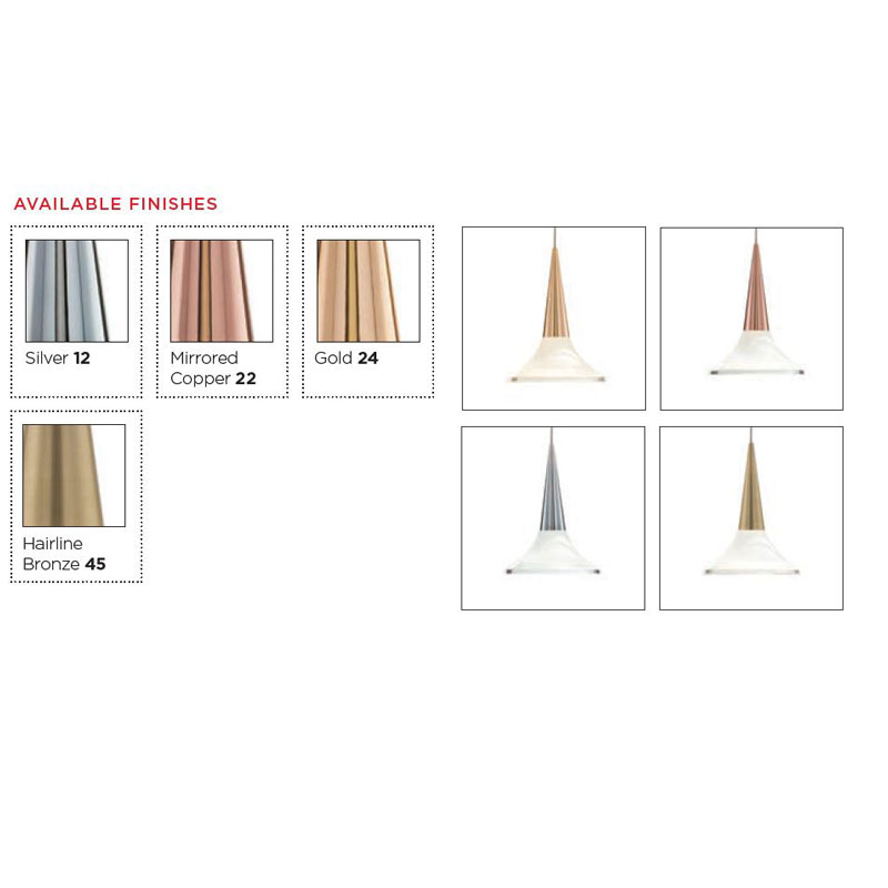 Product Code: 6VMM.07.350.xx Light source: 1W LED (max) | 3000K | 240V Materials: Plated mirrored metal and glass Dimensions: H 229mm x 100mm. Cable length 2700mm Brand: Viso Contemporary slimline Interior pendant with plated mirror metal and frosted glass diffuser. Designed by Filipe Lisboa. Designed and made in Canada. Available in Copper, Silver, Bronze or Gold. IP20