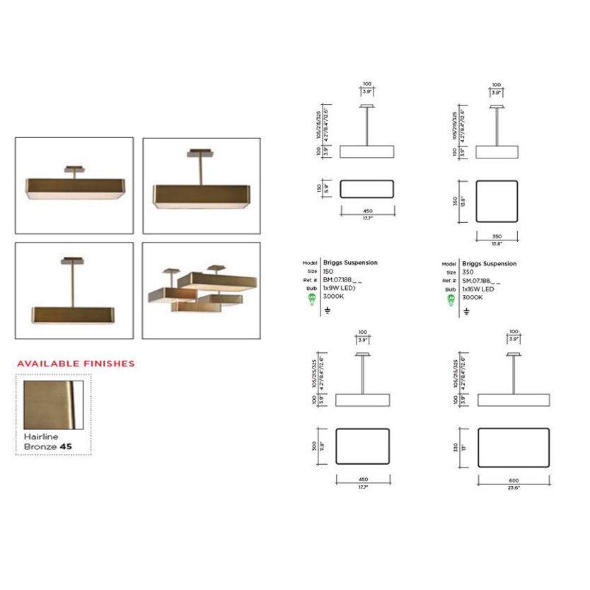 Product Code: 6VMM.07.188xx Light source: 1 x 18W LED (max) | 3000K | 240V Materials: Plated metal. Dimensions: H 150mm x L 450mm x D 300mm. Suspension length variable. Brand: Viso