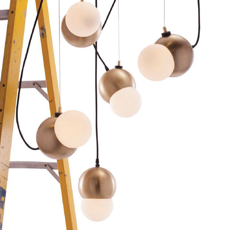 Maggie is a two-tone suspension fixture featuring dynamic magnet aircraft cable that can be used to change the fixture orientation. Available in Silver, Copper, Gold, Smoke, hairline Bronze and dark Bronze finish with frosted white opal glass.