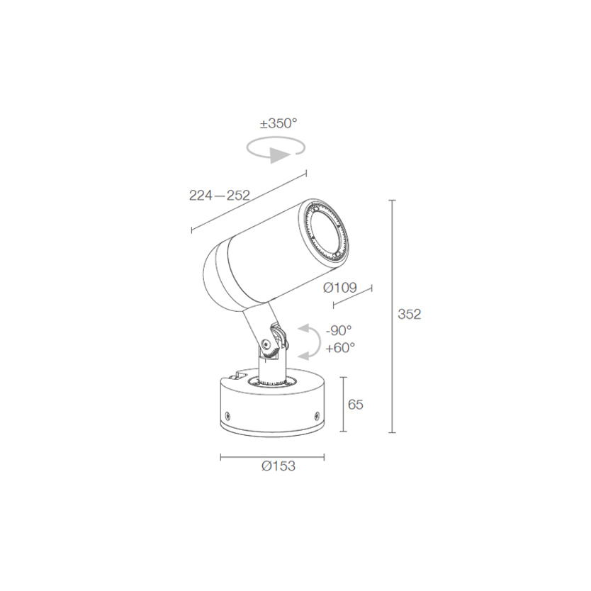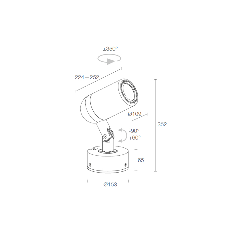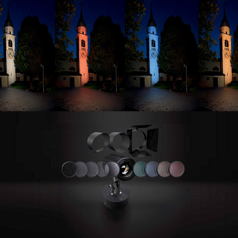 Product Code: 4LAK11100FR1N Light source: 1 x 43W LED | range of LED colours & beam angles available | 3260lm (3000K) | CRI 80 | 240V Materials: Body in black anodized aluminium, screen in tempered glass Dimensions: Base - Ø153mm x H 65mm x H 352mm x W 224mm-252mm x D 109mm Brand: Luce&Light Exterior surface mounted projector light fitting with multiple colour temperatures, inter-changeable filters and focusable optics (sold separately). IP66 rated. Designed and made in Italy. For a detailed technical Data Sheet, click here.