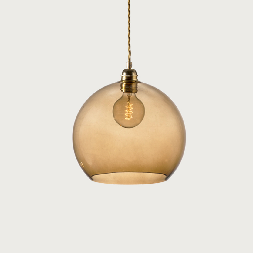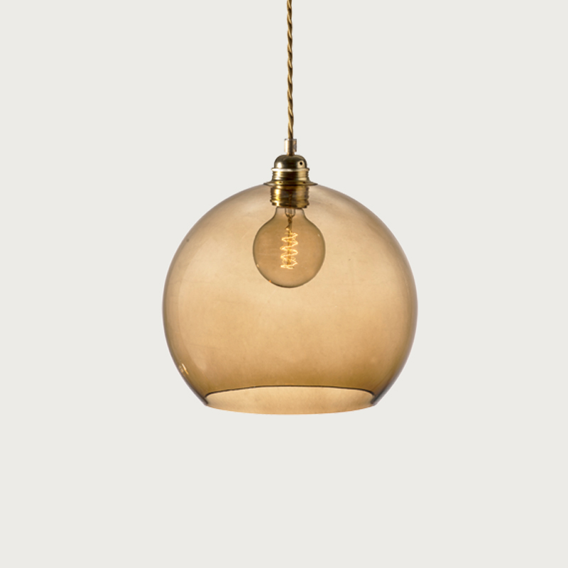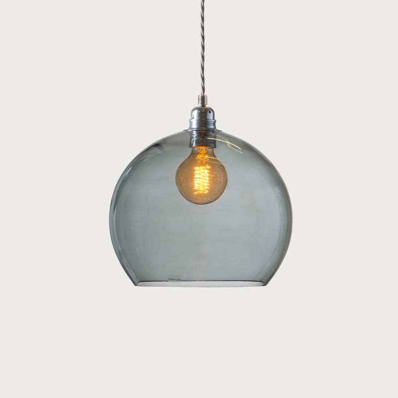 Product Code: 8ELA101632 Light source: 1 x E27 40W (max) Materials: Glass, Metal Dimensions: Ø 280mm x H 280mm | 2000mm Suspension Cable Brand: Ebb & Flow Being the first EBB & FLOW design, Rowan continues to be a classic, timeless design that works well in almost any space, thanks to its simple spherical shape and elegant twisted fabric cable. Available in a variety of glass colours and sizes, with either Gold or Silver cable and metalware. Rated IP20 suitable for indoor use. Designed by Susanne Nielsen and hand-made in Europe.