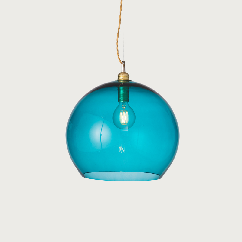 A blend of mouth-blown glass and metal finishes in a variety of colours.