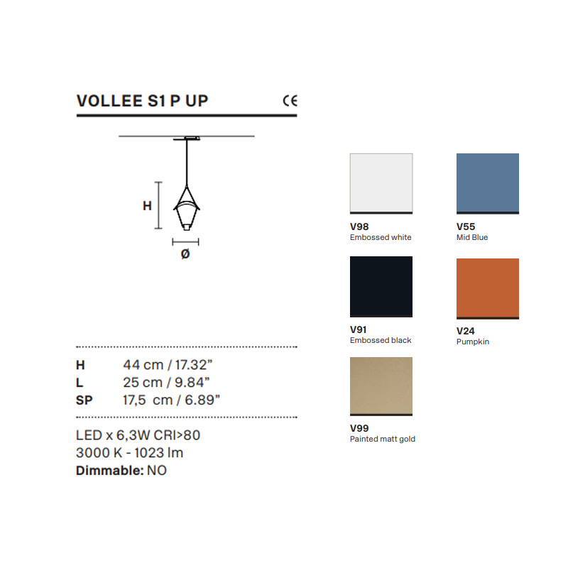 Product Code: 2MVOLLEES1PUP Light source: LED 6.3W 3000K (included) Materials: Metal Dimensions: H 440mm. 250 diameter These fun Pendant Lights from Masiero reinterpret light as lightness. Available in embossed White, embossed Black, mid Blue, Pumpkin and painted matt Gold (prices vary). Made & designed in Italy.