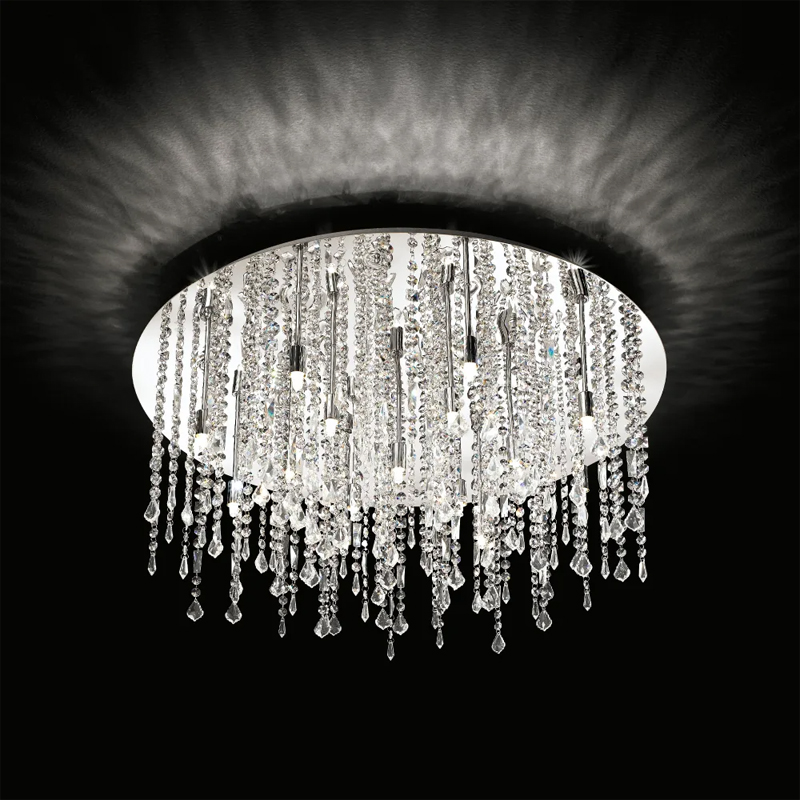 Product Code: 8I052991 Light source: 8 x G9 40W (Max) | Not Incl. Materials: Metal, Crystal Dimensions: Ø 400mm x H 305mm Brand: Ideal Lux Dramatic and dazzling, the Royal Ceiling Light is a flush-mounted chandelier that brings luxury to new heights. Cascading strands of precision-cut crystals reflect and refract light, creating a shimmering spectacle ideal for entryways, formal dining areas, or grand bedrooms. A true statement piece with timeless elegance. Rated IP20 suitable for indoor use. Dimmable with dimmable globes. Designed by Ideal Lux in Italy. SALE PRICE WHILE STOCKS LAST - X1 ONLY For trade enquiries, please contact us below. |