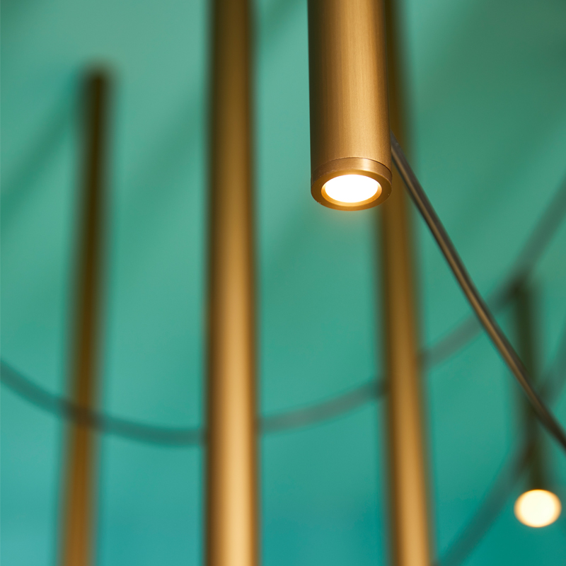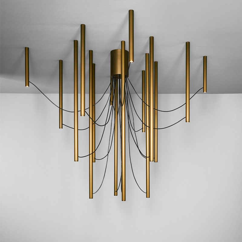 Product Code: 6FF55A12 76 Light source: 51.2W LED (Built-In) | 2700K Materials: Metal Dimensions: Ø 1500mm x H 1200mm (max) Brand: Fabbian Ari is a flexible lighting system that can be adapted to both small and large environments, different styles and needs. Ari can combine up to 16 elements of different lengths, installed freeform or following a precise geometric pattern to create a minimalist, contemporary take on the classic chandelier. Available in Bronze, Black and White with either 2700K or 3000K colour temperature (price varies). Dimmable with 1-10V. Rated IP20 suitable for indoor use. Designed by Marco Spatti & Marco Pietro Ricci for Fabbian and made in Italy. For trade enquiries, please contact us below.  |