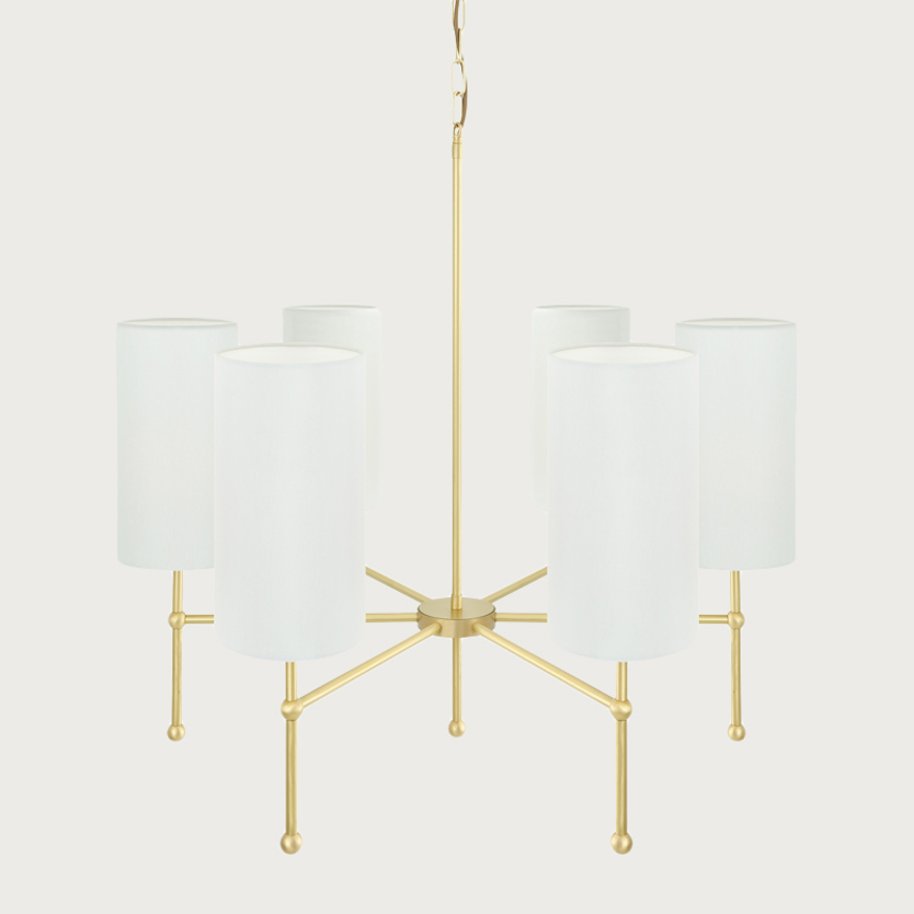 Product Code: 6MMLF267SATBRS-WH Light source: 6 x E27 40W (Max) | Not Incl. Materials: Brass, Fabric Dimensions: Ø 850mm x H 780mm | 2000mm Suspension Chain Brand: Mullan The Arizona Chandelier combines clean modern lines with a soft, coastal elegance. Ideal for dining areas, living rooms, and open-plan spaces, Arizona suits modern interiors with a relaxed Hamptons or contemporary coastal influence. Available in a range of metal finishes, with either White or Grey shades. Rated IP20 suitable for indoor use. Dimmable with dimmable globes. Handcrafted by Mullan Lighting in Ireland. For trade enquiries, please contact us below. RELATED ITEMS