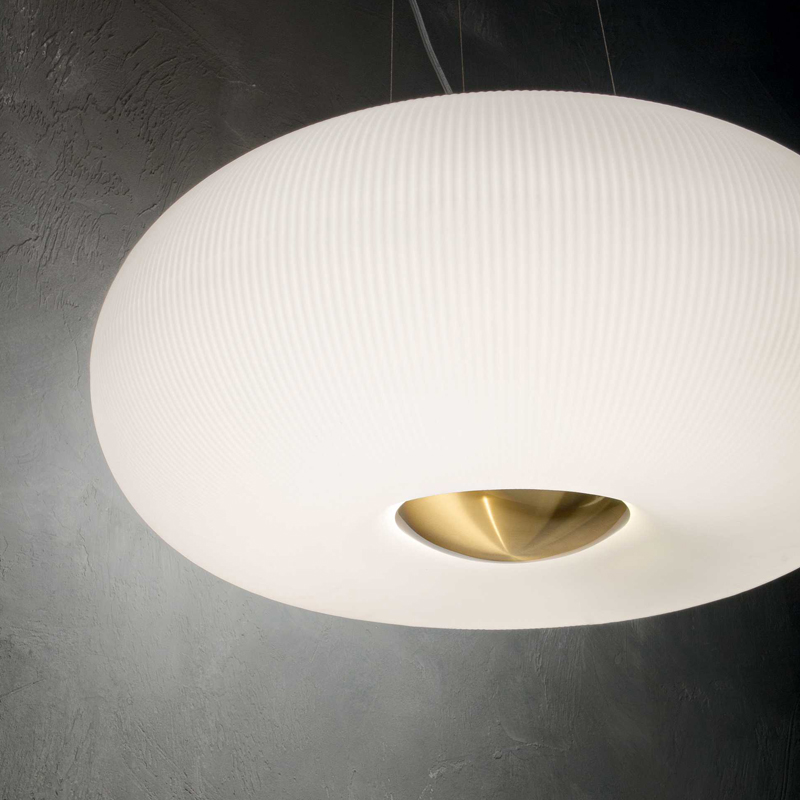 Product Code: 8I214481 Light source: 5 x GX53 9W (max) | Included Materials: Metal, Glass Dimensions: Ø 520mm x H 225mm | Max Hang Height 2225mm Brand: Ideal Lux This decorative pendant light features a white acid-etched blown glass shade with a pleated pattern for soft, evenly diffused light. The brass metal details add a sense of elegance and art-deco aesthetic to the overall look of the pendant. Rated IP20 suitable for indoor use. Non-dimmable. Designed by Ideal Lux in Italy. For trade enquiries, please contact us below. |