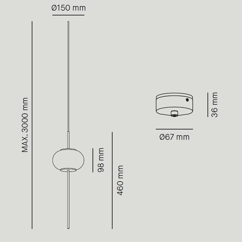 Product Code: 8M6937+8M2383 Light source: 2 x G9 LED (Incl.) Materials: Glass and Zamak Dimensions: Ø 150mm x H 460mm | Max cord length 3000mm Brand: Milan Satin triplex opal blown glass serves as the light emitting centre of this galaxy, floating in place and accentuated by the elongated supports made of high-strength injected Zamak. Includes ceiling mount canopy. Dimmable. Designed by Martín Azúa and made in Spain. 1 ONLY EX DISPLAY