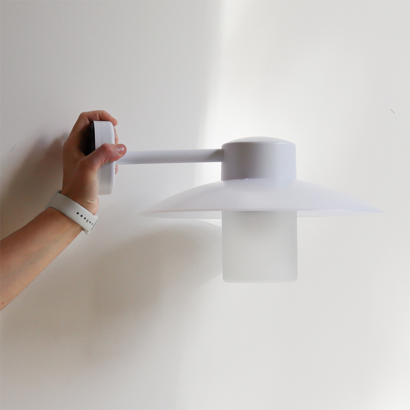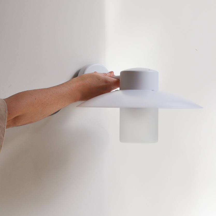 Product Code: 8RAB101501 Light source: 1 x E27 23W (max) | Not Incl. Materials: Aluminium, Glass, Polycarbonate Dimensions: H 220mm x W 328mm x D 391mm Brand: Roger Pradier This outdoor wall light features a modern design, perfect for beside entryways to provide pleasant, glare-free illumination. The structure of the body is finished in snow white, while the white polycarbonate shade adds a touch of character. The light source is housed inside a frosted glass cylinder which can be unscrewed for ease of access to the globe. Rated IP44 suitable for outdoor use. Designed by Stéphane Joyeux for Roger Pradier and made in France. Sale price while stocks last, x1 available (new)