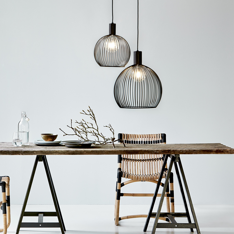 Product Code: 6N84243003 Light source: 1 x E27 60W (max) | Not Incl. Materials: Metal, Plastic Dimensions: Ø 300mm x H 350mm | 3000mm fabric cable suspension Brand: Nordlux Aver is a pendant light that breaks with tradition with its visible light bulb behind the curved metal threads delivering on both beautiful light and fascinating shadow play. Available in other sizes (price varies). Rated IP20 suitable for indoor use. Designed in Denmark by Carlo Volf. For trade enquiries, please contact us below. |
