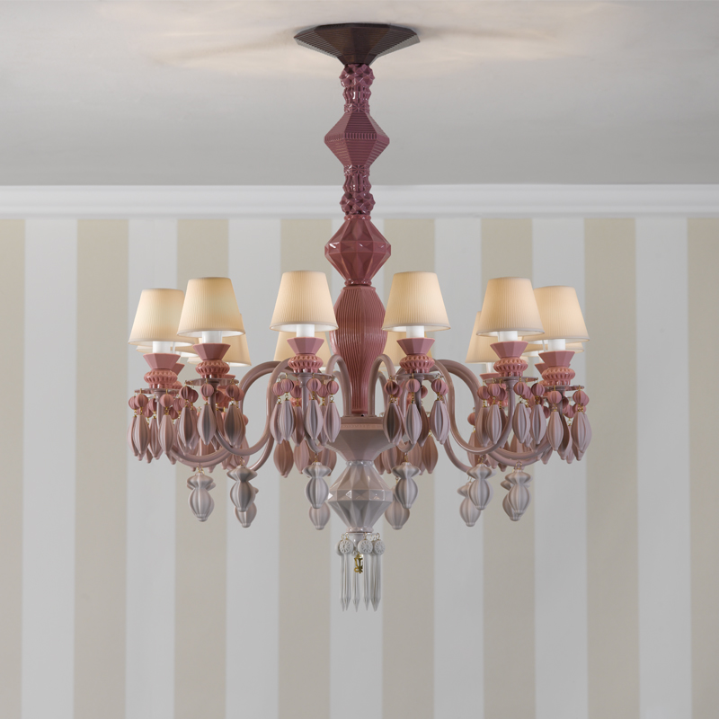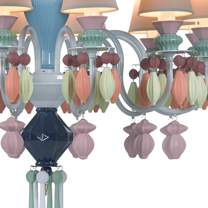 Product Code: 8L01023XXX Light source: 12 x G9 18W LED (Max) | Not Incl. Materials: Porcelain Dimensions: Ø 650mm x H 750mm | 2500mm Max Hang Height Brand: Lladro Beauty of the Night. Such is the name of the plant whose petals reflect the moonlight, thus acquiring the magical property of glowing in the dark. This striking species provides the inspiration for the Belle de Nuit lighting collection, particularly the Multi-coloured model chandelier. Available in various colours and other sizes. Includes translucent, engraved porcelain shades. Longer suspension on request (price varies). Rated IP20 suitable for indoor use. Dimmable with dimmable globes. Designed by Dept. Diseño y Decoración for Lladro and made in Spain. Please note that porcelain products are handmade and the exact size, colour and texture of each piece may vary. For trade enquiries, please contact us below.  |