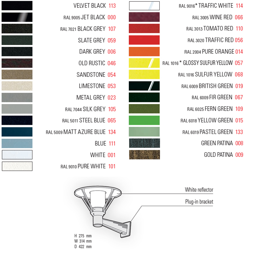 Product Code: 8R115001xxx Light source: 1 x E27 105W (max) | Not incl. Materials: Aluminium, Glass Dimensions: H 275mm x W 314mm x D 422mm Brand: Roger Pradier This contemporary outdoor wall light features a 25 year anti-corrosion guarantee and is available in a wide range of powder coated colours, perfect for seaside environments. Also available with a built-in sensor as well as various other models including garden bollards and lamp posts (price varies). Rated IP44. Designed by Stéphane Joyeux and made to order in France. For trade enquiries, please contact us below. |