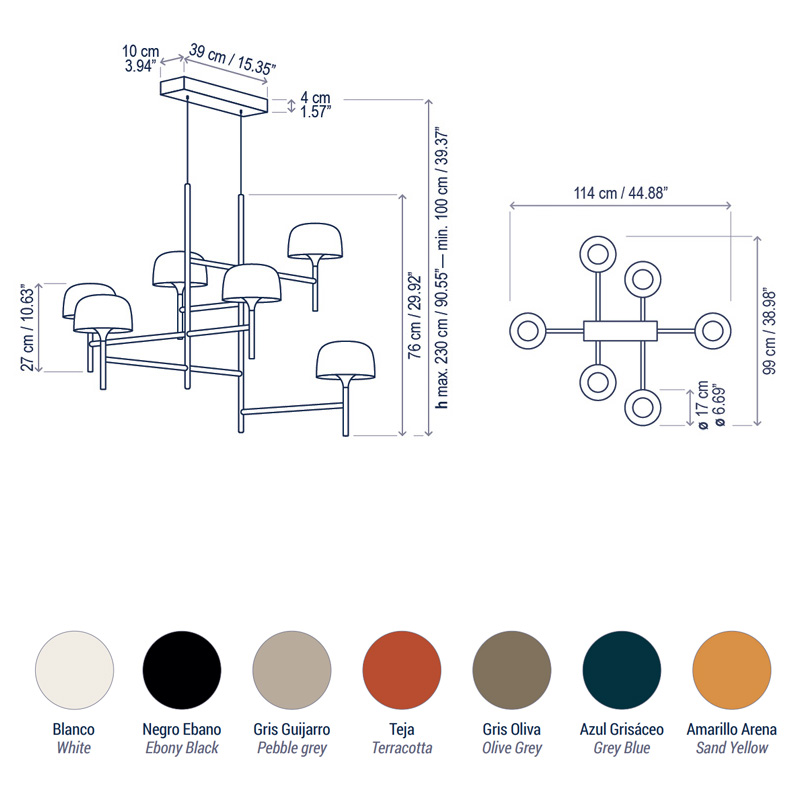 Product Code: 6B20102215013 Light source: 6 x 12W LED (Built-In) | 2700K | 10080lm Materials: Aluminum, Brass, Polycarbonate Dimensions: H 760mm x W 114mm x D 990mm Brand: Bover Inspired by the classic Maria Theresa chandeliers, the concept of the Bol emerged as a large, contemporary chandelier whose charm resides in its opaque body and the upper and lower light path emitted by its shades. The central structure of Bol lamps comprises different stems and shade bodies that can be connected to one another via a central pole. This allows different figures to be devised, both horizontally and vertically, even continuous sequences. Rated IP20 suitable for indoor use. Dimmable with TRIAC. Designed by Estudi Manel Molina and made in Spain. For trade enquiries, please contact us below. |