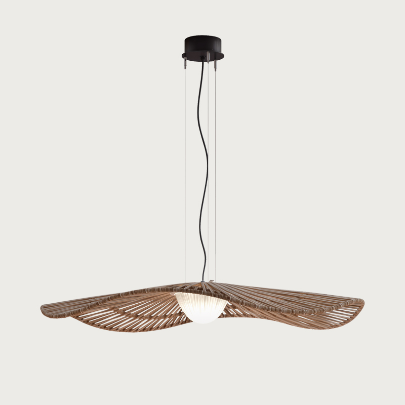 Product Code: 6B33804214133 Light source: 17.1W LED | 2700K | 1456lm | CRI90 Materials: Stainless Steel, Aluminum, Synthetic Polyethylene Fiber Dimensions: Ø 1005mm x H 123mm | 2000mm Cable Suspension Brand: Bover The Mediterrània lamp is an ode to the light, the Mediterranean breeze and smell. A soft wave that pays tribute to our Mediterranean light, so heterogeneous throughout the day, that light that always combines bright flashes with very warm beams, especially in the sunrise and sunset. In this outdoor version the ribbon shade is replaced with a recyclable and non-toxic synthetic fiber to give it greater resistance and presence in outdoor environments. Rated IP66 suitable for outdoor use. Dimmable with TRIAC. Designed by Alex Fernández Camps for Bover and crafted in Spain. For trade enquiries, please contact us below. RELATED ITEMS
