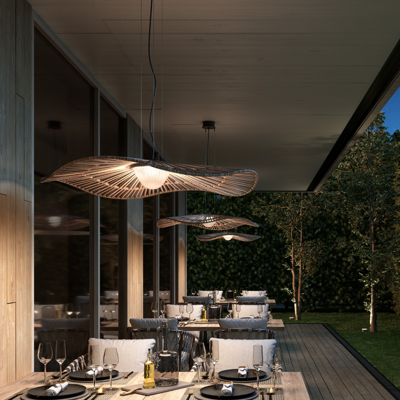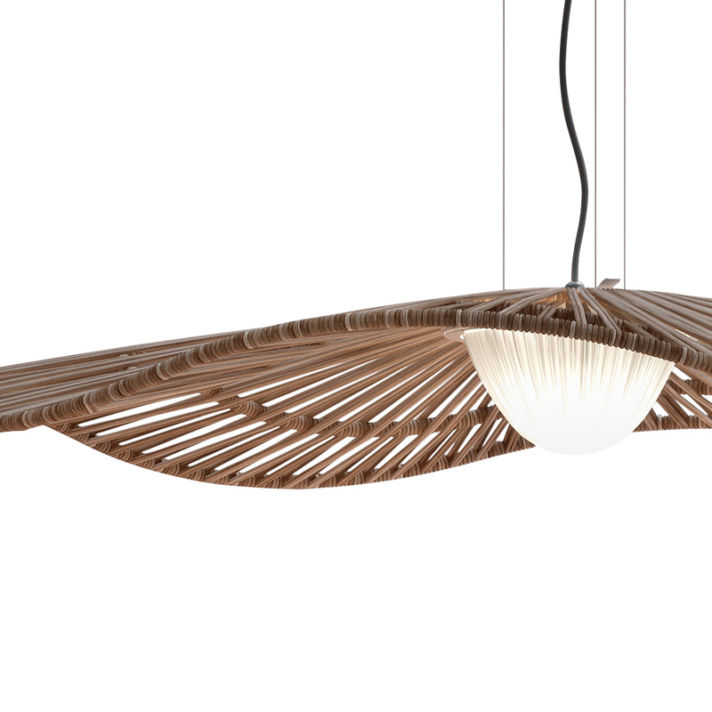 Product Code: 6B33804214133 Light source: 17.1W LED (Built-In) | 2700K | 2064lm Materials: Stainless Steel, Aluminum, Synthetic Polyethylene Fiber Dimensions: Ø 1005mm x H 123mm | 2000mm Cable Suspension Brand: Bover The Mediterrània lamp is an ode to the light, the Mediterranean breeze and smell. A soft wave that pays tribute to our Mediterranean light, so heterogeneous throughout the day, that light that always combines bright flashes with very warm beams, especially in the sunrise and sunset. In this outdoor version the ribbon shade is replaced with a recyclable and non-toxic synthetic fiber to give it greater resistance and presence in outdoor environments. Rated IP66 suitable for outdoor use. Dimmable with TRIAC. Designed by Alex Fernández Camps and made in Spain. For trade enquiries, please contact us below. |