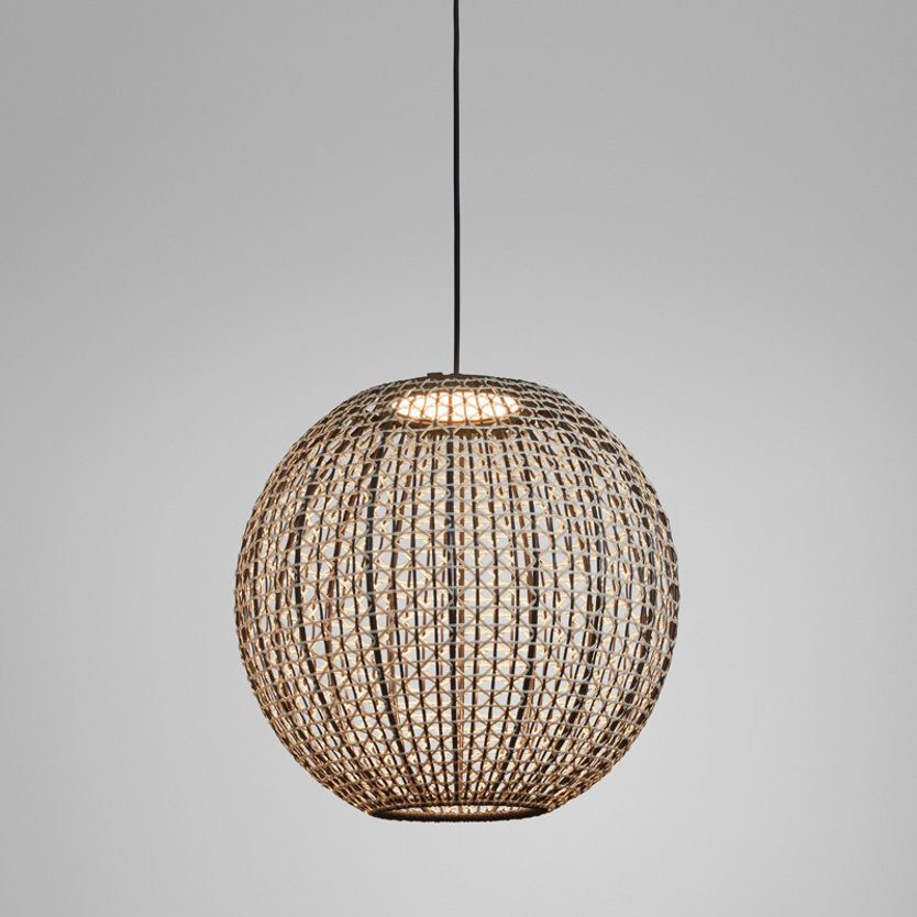 Product Code: 6B30906214169 Light source: 1 x 14W LED | CRI90 | 2700K | 1400lm Materials: Stainless steel, Aluminum, Synthetic Fiber, Polycarbonate Dimensions: Ø 600mm x H 570mm | Max Hang Height 2570mm Brand: Bover The design intent of the Nans collection was to highlight the craftsmanship of the lampshades and to explore different ways of weaving, by combining different colours and formats to create a true Mediterranean style. Available in various sizes and configurations with either Beige, Brown or Red shades featuring coastal Blue accents and graphite brown metal ware. TRIAC Dimmable. Rated IP65 suitable for outdoor use. Designed by Joana Bover and made in Spain. For trade enquiries, please contact us below. |