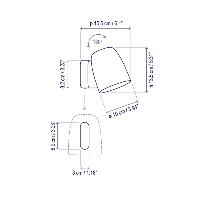 Product Code: 6B19601012358 Light source: 1 x 6.3W LED | CRI90 | 2700K | 950lm Materials: Stainless steel, Aluminum, Polycarbonate Dimensions: Ø 100mm x H 135mm x D 155mm Brand: Bover Nut is a collection of discreet lights that are characterised by their ergonomic and striking body. They are easy and intuitive to use, with a swivel mechanism from right to left at a 180° angle. Available in White, Black, Light Grey and Terracotta. Also available with a built-in dimmer switch (price varies). TRIAC Dimmable. Rated IP54 suitable for outdoor use. Designed by Estudi Manel Molina and made in Spain. For trade enquiries, please contact us below. |