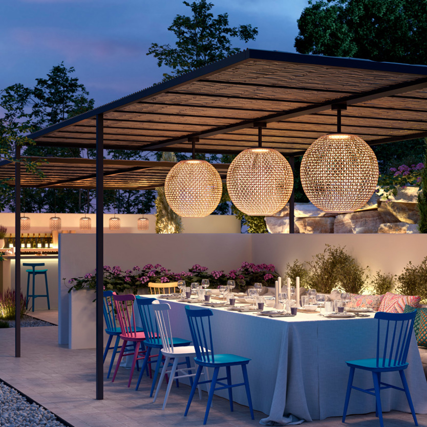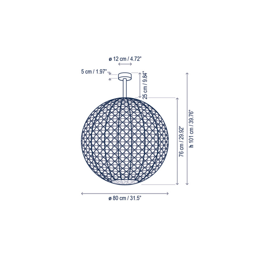 Product Code: 6B30905104169 Light source: 24W LED (Built-In) | 2700K | 2400lm Materials: Stainless steel, Aluminum, Synthetic Fiber, Polycarbonate Dimensions: Ø 800mm x H 1001mm | Base Plate 120mm Brand: Bover The design intent of the Nans collection was to highlight the craftsmanship of the lampshades and to explore different ways of weaving, by combining different colours and formats to create a true Mediterranean style. Available in various sizes and configurations with either Beige, Brown or Red shades featuring coastal Blue accents and graphite brown metal ware. TRIAC Dimmable. Rated IP65 suitable for outdoor use. Designed by Joana Bover and made in Spain. For trade enquiries, please contact us below. |