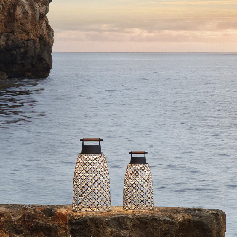 Product Code: 6B30908324163 Light source: 3W LED (Built-In) | 2700K | 460lm Materials: Stainless steel, Aluminum, Teak Wood, Synthetic Fiber Dimensions: Ø 208mm x H 405mm Brand: Bover The design intent of the Nans collection was to highlight the craftsmanship of the lampshades and to explore different ways of weaving, by combining different colours and formats to create a true Mediterranean style. Available in various sizes with either Beige, Brown or Red shades featuring coastal Blue accents and graphite brown metal ware. Rechargeable by USB with built-in 3 step dimming function. Up to 12 hours of battery life at full power. Rated IP54 suitable for outdoor use. Designed by Joana Bover and made in Spain. For trade enquiries, please contact us below. |