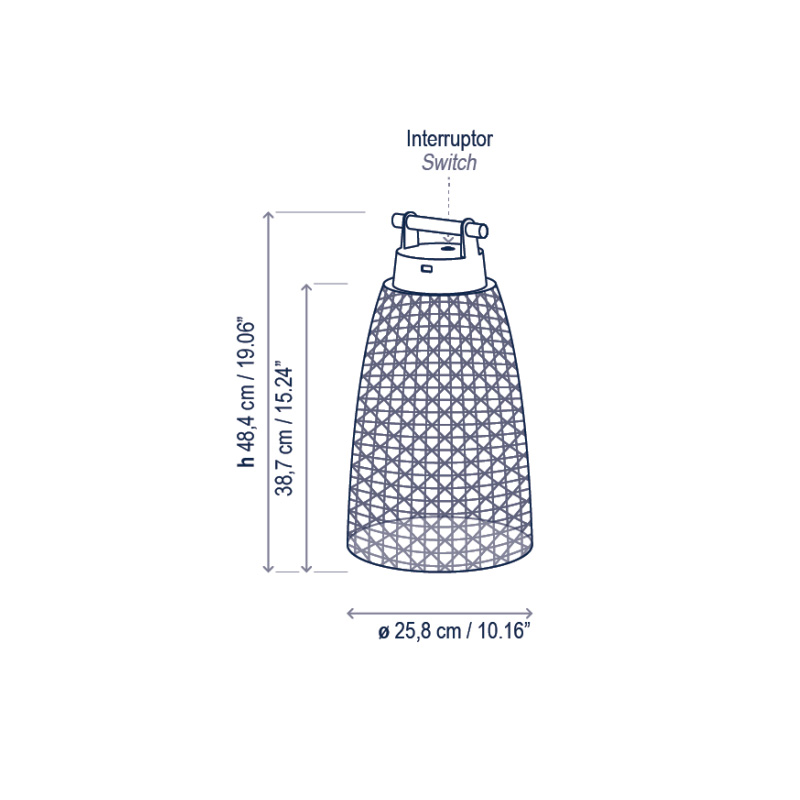 Product Code: 6B30909324160 Light source: 3W LED (Built-In) | 2700K | 460lm Materials: Stainless steel, Aluminum, Teak Wood, Synthetic Fiber Dimensions: Ø 258mm x H 484mm Brand: Bover The design intent of the Nans collection was to highlight the craftsmanship of the lampshades and to explore different ways of weaving, by combining different colours and formats to create a true Mediterranean style. Available in various sizes with either Beige, Brown or Red shades featuring coastal Blue accents and graphite brown metal ware. Rechargeable by USB with built-in 3 step dimming function. Up to 12 hours of battery life at full power. Rated IP54 suitable for outdoor use. Designed by Joana Bover and made in Spain. For trade enquiries, please contact us below. |