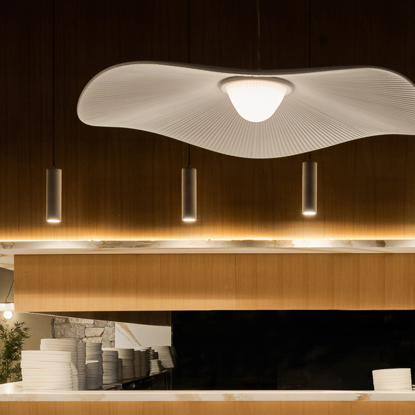 Product Code: 6B33801215054 Light source: 17W LED | 2700K | 1530lm | CRI90 Materials: Aluminium, Iron, Polycarbonate, Ribbon Dimensions: Ø 1050mm x H 123mm | 2165mm Max Hang Height Brand: Bover The Mediterrània lamp is a poetic tribute to the essence of the Mediterranean—its breeze, its scent, and above all, its light. Its soft, undulating form evokes the gentle rhythm of sunlight across the day, from the golden warmth of sunrise to the deep glow of sunset. Available in White or Cream ribbon finishes, and in a range of sizes to suit different spaces (price varies). Dimmable via TRIAC (other dimming options available on request). Rated IP20 suitable for indoor use. Designed by Alex Fernández Camps for Bover, and proudly made in Spain. For trade enquiries, please contact us below. RELATED ITEMS