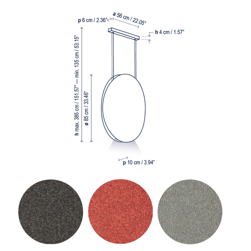 Product Code: 6B11650230197 Light source: 14.4W LED (Built-In) | 3000K | CRI 95 | 2160lm Materials: Aluminum, Basotect Sound Absorbing Foam, Crevin Fabric, MDF Dimensions: Ø 850mm x W 100mm | 3000mm Cable Suspension Brand: Bover Noren take its name from the pieces of fabric that were traditionally used as curtains in Japanese homes to divide different areas, replacing walls, doors or windows. Inspired by this Japanese tradition, the Noren collection are lightweight, decorative light structures with sound-absorbing panels which, when combined together, help to coordinate the space by integrating sound and light. Rated IP20 suitable for indoor use. Acoustic absorption class: aw A Dimmable with Casambi, 1-10V - Other dimming on request. Designed by Estudi Manel Molina and made by Bover in Spain. For trade enquiries, please contact us below. |