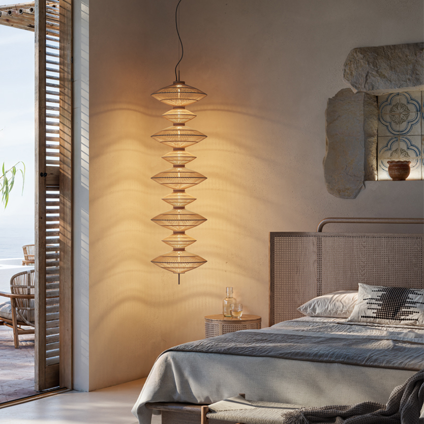 Product Code: 6B11712234356 Light source: 64.8W LED | 2400K | 2099lm | CRI90 Materials: Aluminum, Steel, Cotton Dimensions: Ø 420mm x H 1560mm | 2000mm Suspension Cable Brand: Bover The Yuyun series introduces a soft, vertical lighting statement for double-height spaces, stairwells, and feature corners. Each pendant is handwoven in continuous cotton thread with a warm beige finish, offering gentle texture and a refined glow. With two shade sizes and fully customisable compositions, Yuyun allows you to create anything from a simple drop to a dramatic multi-tiered feature - tailored perfectly to your space. Rated IP20 suitable for indoor use. Dimmable with TRIAC, DALI or 0-10V (pricing varies). Designed by Joana Bover and made in Barcelona. For trade enquiries, please contact us below. |