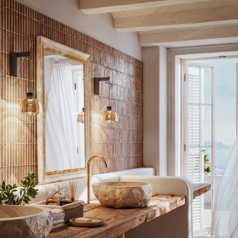 Product Code: 6B25905007362 Light source: 3W LED | 2700K | CRI90 Materials: Aluminum, Iron, Glass, Polycarbonate Dimensions: H 398mm x W 152mm x D 210mm Brand: Bover An elegant evolution of the Drip & Drop series, the Drep features a softly curved, blown-glass shade that diffuses light beautifully while casting a focused glow through its open base. Its sculptural form gently envelops the space, offering both ambient and direct illumination—ideal for bathroom vanities, bedsides, or contemporary hospitality projects. Shades offered in Opal White, Smoked Mirror, Amber Mirror or Opal Nude. Rated IP20 suitable for indoor use. Designed by Christophe Mathieu for Bover and made to order in Spain. For trade enquiries, please contact us below. RELATED ITEMS