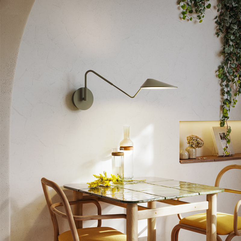 Product Code: 6B33203013139 Light source: 10.5W LED | 2700K | 1051lm | CRI90 Materials: Aluminium, Iron, Methacrylate Dimensions: H 245mm x W 220mm x D 620mm | Base Ø 140mm Brand: Bover With its clean angles and understated form, the Non La Wall Light brings sculptural elegance to modern interiors. Designed by Jorge Pensi, its conical shade and slender arm reference the iconic Asian hat it’s named after, casting soft directional light ideal for reading nooks, bedside lighting, or intimate dining zones. Available in a range of soft-toned finishes (prices vary) Dimmable with TRIAC dimming. Rated IP20 suitable for indoor use. Designed by Jorge Pensi for Bover and made to order in Spain. For trade enquiries, please contact us below. RELATED ITEMS