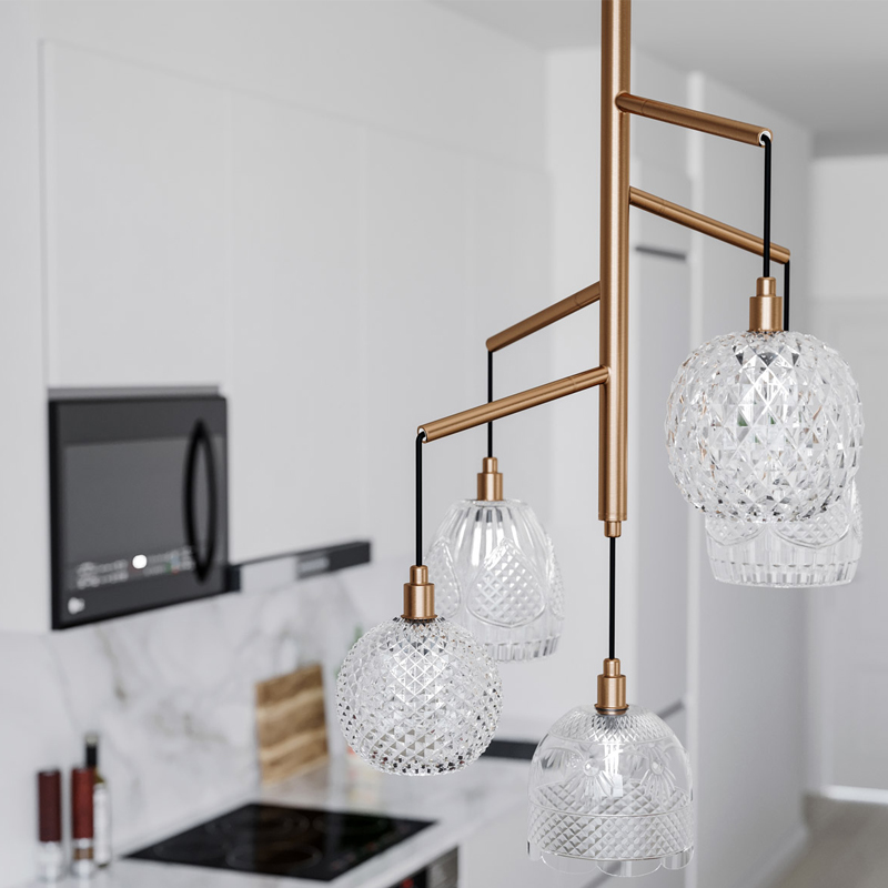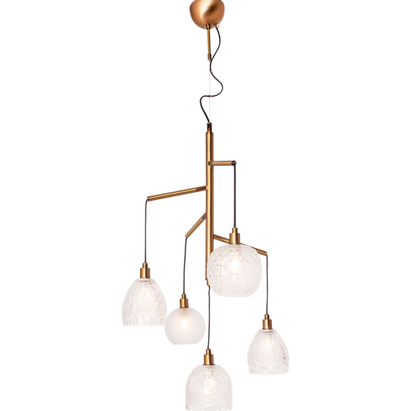 Product Code: 4B4201510-7002 Light source: 5 x E14 25W (max) | Not Incl. Materials: Metal, Glass Dimensions: Ø 530mm x H 800mm | Cable Suspension 1200mm Brand: By Rydens The Grace pendant light offers a stylish downpour of vintage-style glass cups and brass branches, resulting in a unique and layered decorative pendant light. Designed in Sweden. Indoor use only. Requires ceiling hook for installation. Designed in Sweden. SALE PRICE WHILE STOCKS LAST For trade enquiries, please contact us below. |