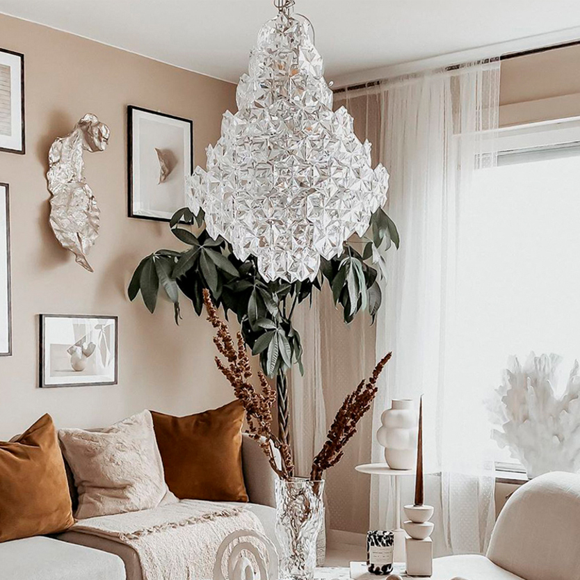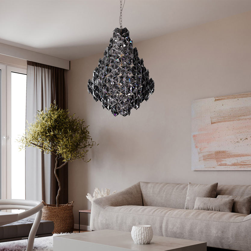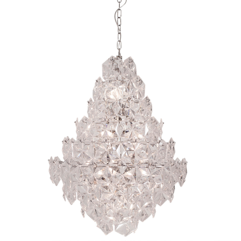 Product Code: 4B4200940-6510 Light source: 11 x E14 40W (max) | Not Incl. Materials: Metal, Acrylic Dimensions: Ø 580mm x H 750mm | 1200mm Suspension Cable Brand: By Rydens This contemporary chandelier is made from 88 pieces of geometric acrylic plates resulting in a stunning feature pendant light. Available in clear or smoked. Requires ceiling hook for installation. Dimmable with compatible globes. Designed in Sweden. SALE PRICE WHILE STOCKS LAST For trade enquiries, please contact us below. |