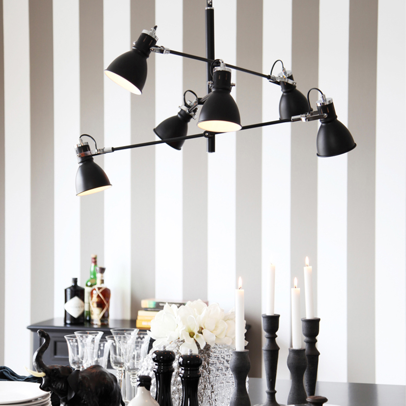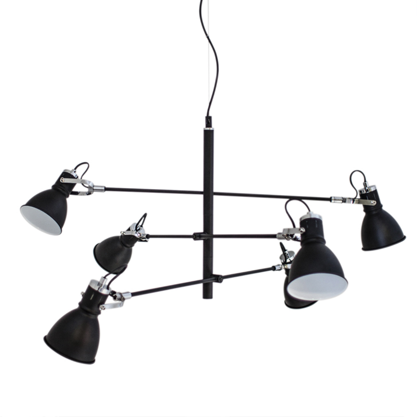 Product Code: 4B4200450-4002 Light source: 6 x 40W E27 (max) | Not Incl. Materials: Metal Dimensions: Ø 900mm x H 540mm | 1200mm Cable Suspension Brand: By Rydens This industrial inspired design features a satin black finish, featuring chrome metal details that add an elegant and sophisticated touch. Each lamp head is adjustable, allowing for personal expression and multi-directional lighting. Rated IP20 suitable for indoor use. Designed in Sweden. SALE PRICE WHILE STOCKS LAST - X1 LEFT For trade enquiries, please contact us below. |