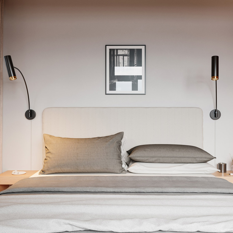 Product Code: 4B4300520-4002 Light source: 1 x GU10 5W (max) | Not Incl. Materials: Metal Dimensions: H 550mm x D 615mm | Base Ø 110mm | Shade H 200mm x Ø 60mm Brand: By Rydens The Puls XL wall light is perfect for settings that require protrusion from the wall, such as over bedheads and cafe tables. Available in Black or White featuring a gold trim, this lamp features a swivel mechanism side to side at the base, as well as an adjustable lamp head. Rated IP20 suitable for indoor use. Supplied as hardwire only. Designed in Sweden. For trade enquiries, please contact us below. |
