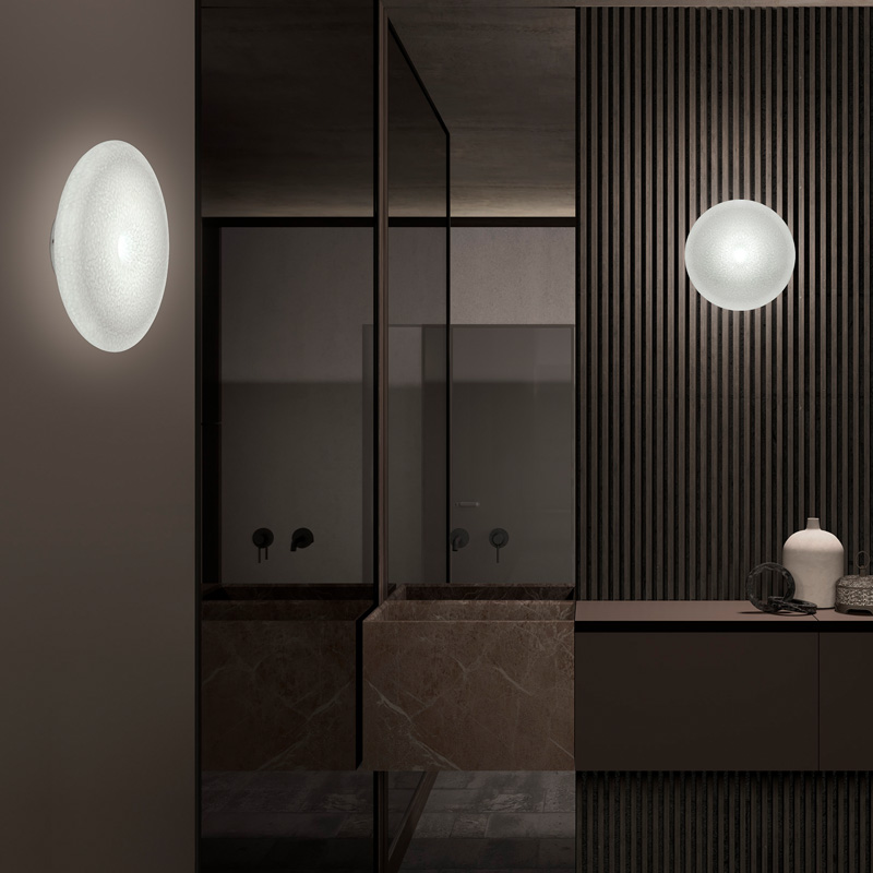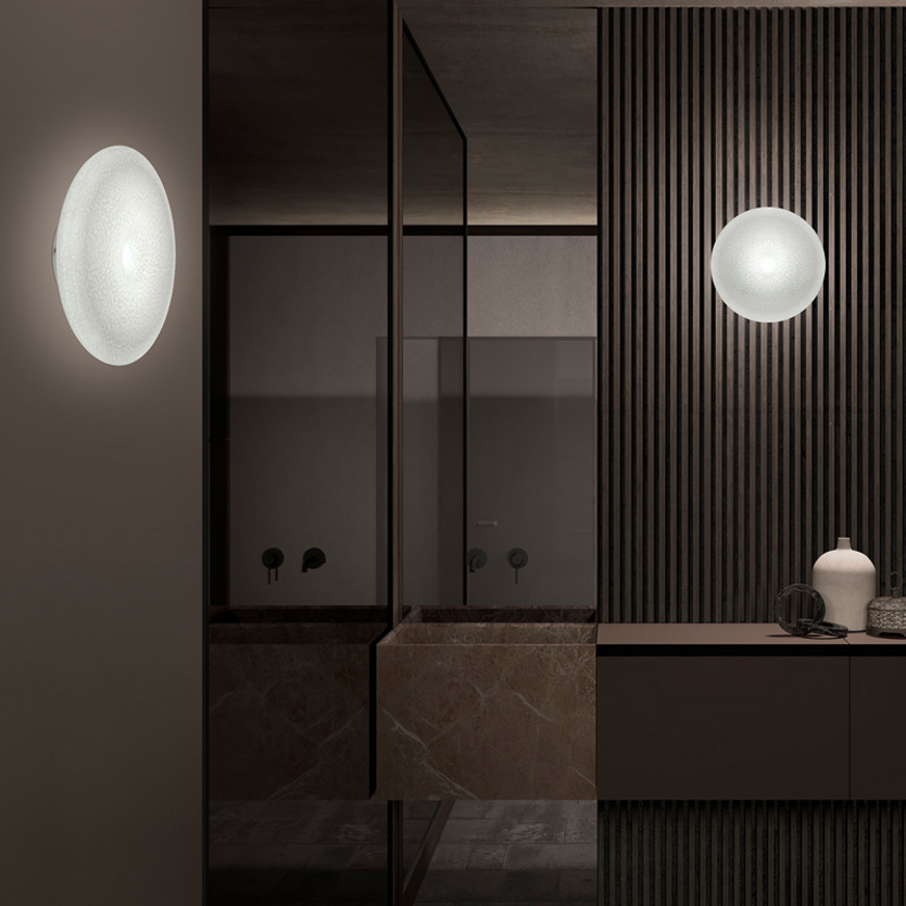 Product Code: 6I00212AP0010 Light source: 12.5W LED (Built-In) | 3000K | 2000lm | 240V Materials: Glass, Metal Dimensions: Ø 330mm x D 100mm Crater is a wall and ceiling light in blown artistic glass with the moon's crater effect. It has a metal structure with a white painted finish. IP20 Designed by Danilo De Rossi & made in Italy For trade enquiries, please contact us below. |