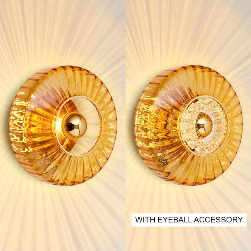 Product Code: 8D23023 + 8D23051 Light source: 1 x E27 40W (Max) | Not Incl. Materials: Aluminium, Glass Dimensions: Ø 260mm x D 170mm Brand: Design By Us The New Wave wall light collection is a series of lamps made in different variations of glass. The designs are expressive and decorative with different variations and sizes to fit both smaller and larger environments, while the rippled glass creates dazzling illumination. Available with Clear, Smoke, Rose, Amber or Opal glass. Rated IP20 suitable for indoor use. Dimmable with dimmable globe, we recommended a Mirror Crown globe. Price shown includes optional eyeball accessory. Design in Denmark. For trade enquiries, please contact us below. |